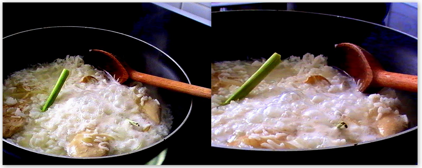 The rice is a burst of fragrant flavour, gently stewed with chicken, in coconut milk. One might use jasmine rice for a recipe that uses lemongrass, but for this, I wanted to do away with the floral hint, and chose basmati instead. 'Basmati' in sanskrit means "the fragrant one", and its earthy, exotic notes shared space beautifully with the lemongrass. Here's how you do it, without doing much at all.